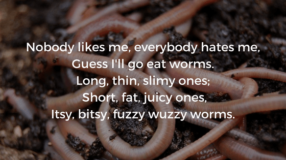 Nobody likes me, everybody hates me,Guess I'll go eat worms.Long, thin ...
